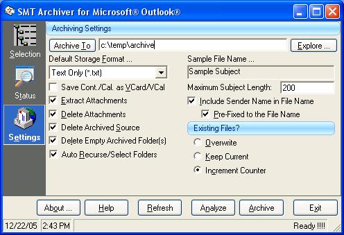 ArchivER is an Outlook® utility that is used to archive Outlook® Folder data to individual files in common file formats instead of an archive PST file.
